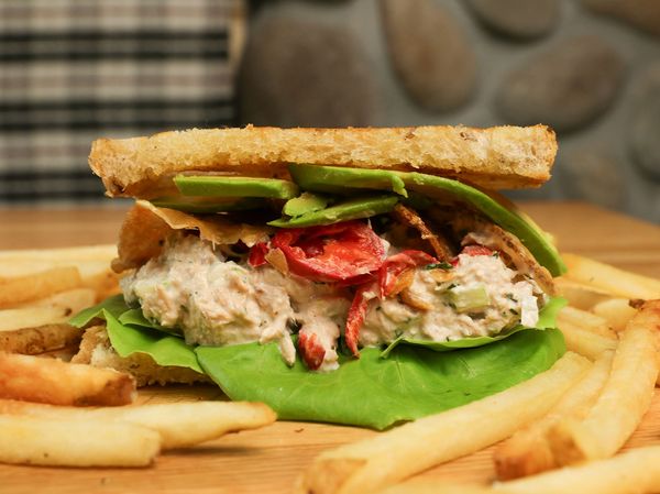Guesthouse Tuna Salad, Avocado, Potato Chips, Butter Lettuce, and Pickled Fresno Peppers on Toasted Rye