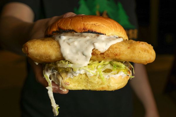 Fried Walleye, House Tarter Sauce, Lettuce, Pickles, Classic Potato Bun.